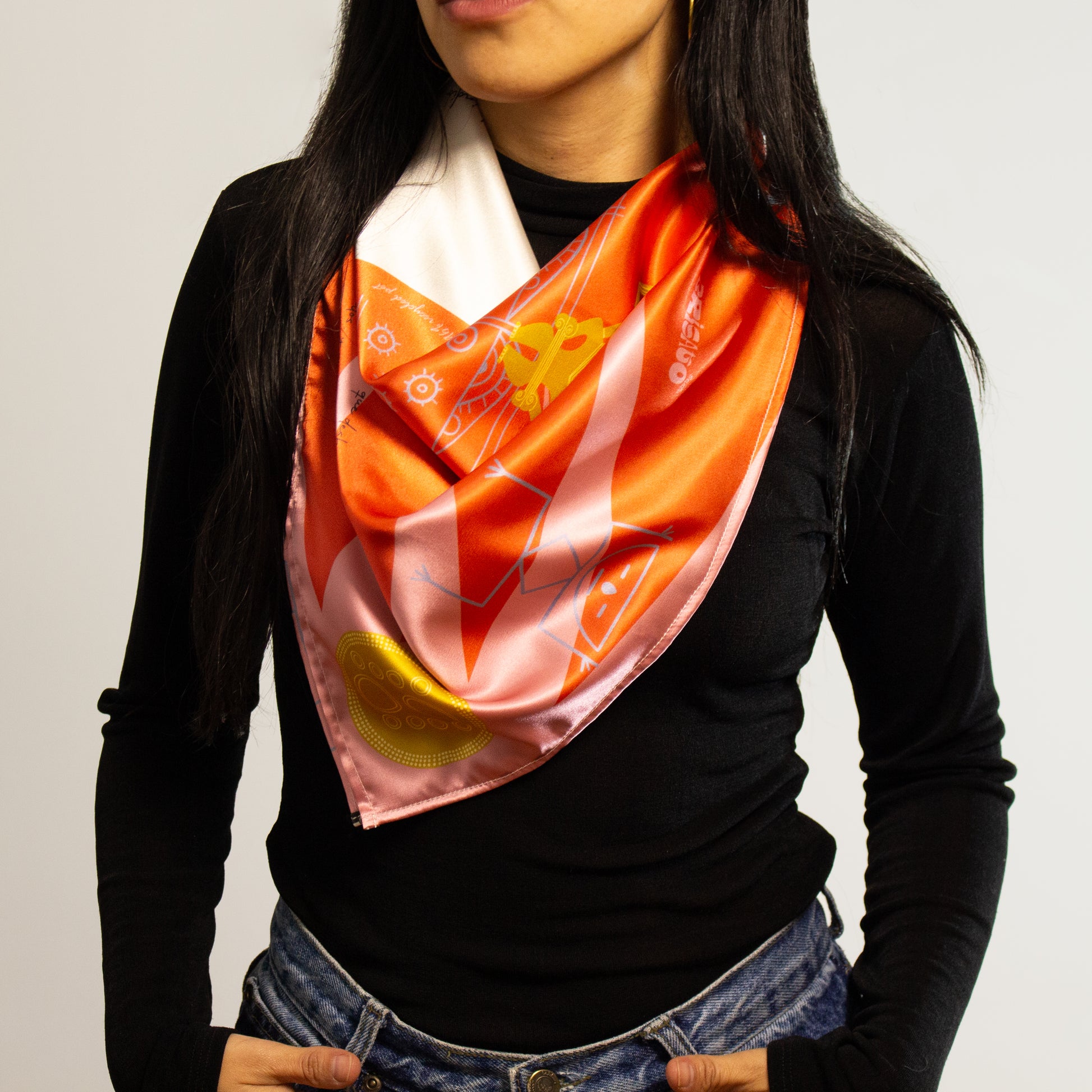 En el diseño hay diferentes piezas de oro de los muiscas que se encuentran expuestas en el museo del oro, hay dibujos de estas en línea y también en color amarillo, la trama blanco y negro que está en un costado, simboliza las montañas en los textiles de estas comunidades, y los textos son de la leyenda original y de algunas frases pronunciadas por personas de la época.